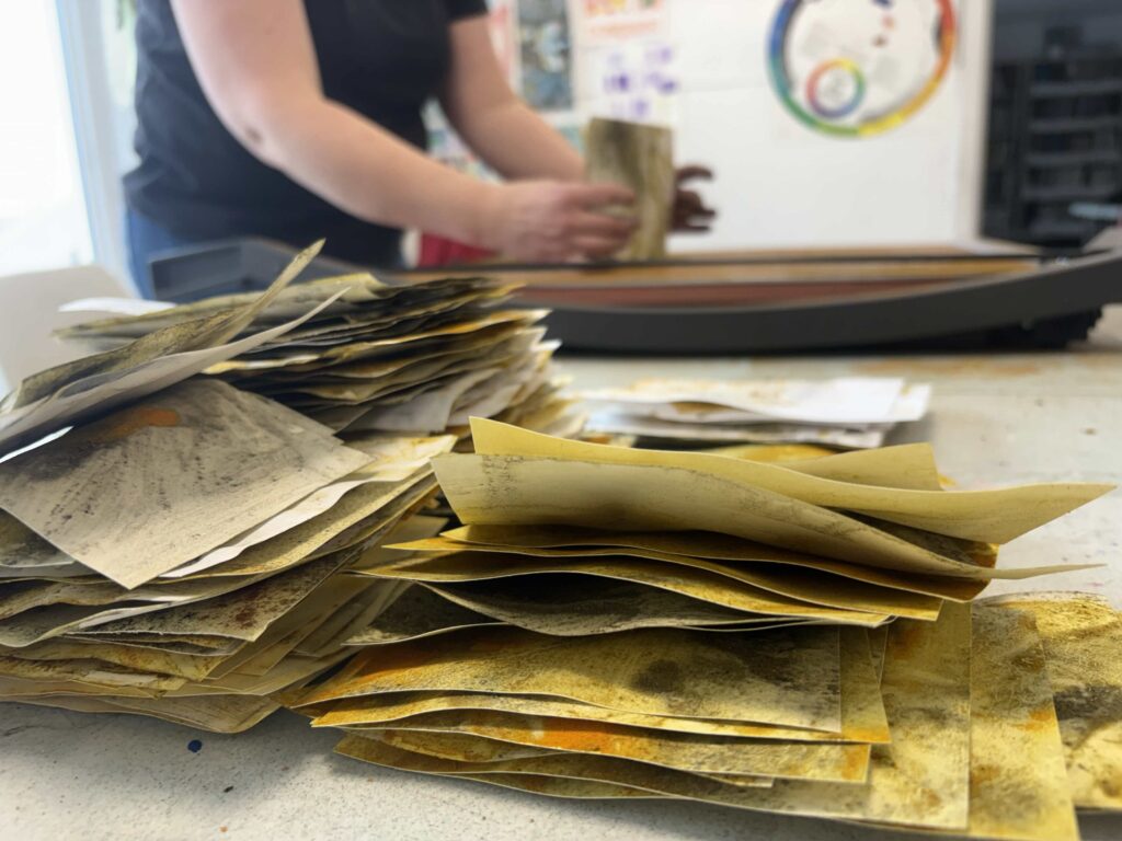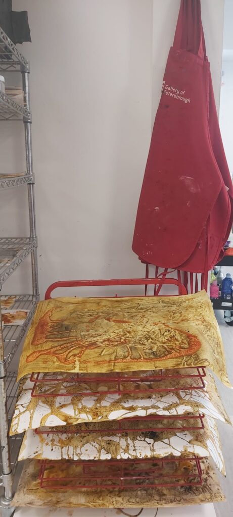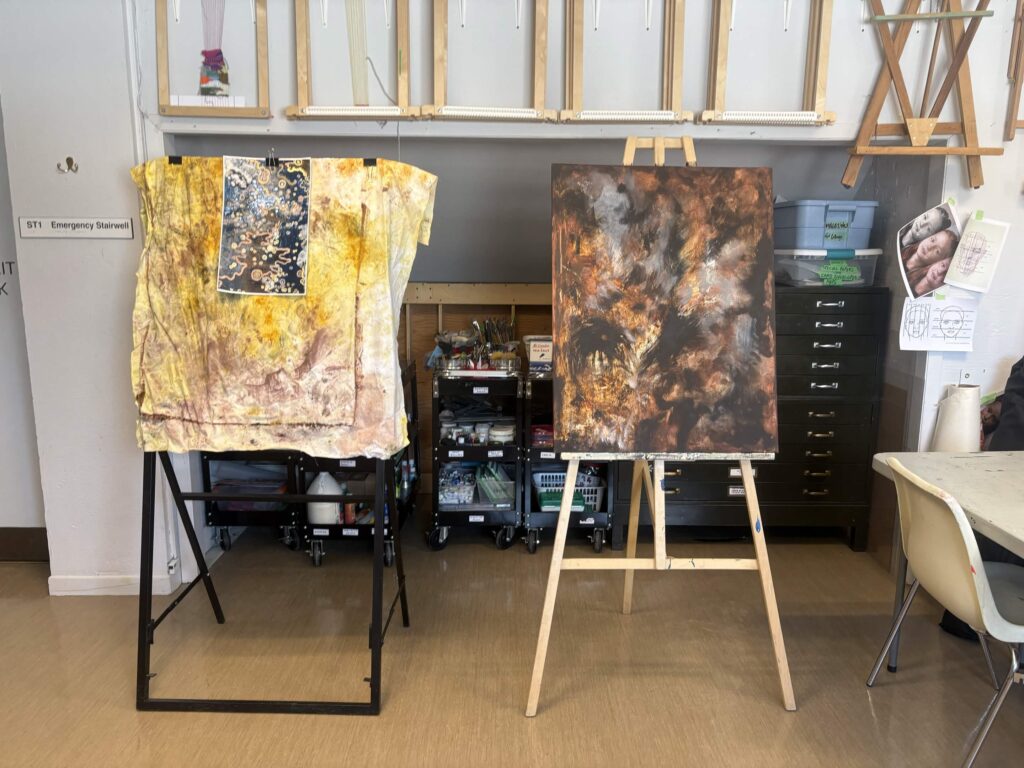 Participants will be encouraged to explore the work of Cole Swanson and participate in a scavenger hunt prior to heading up to the studio space. The works that are being created will focus on materiality, process, layering, and abstraction. The workshop invites participants to explore natural dyes, texture, and collage as forms of playful and meaningful expression.